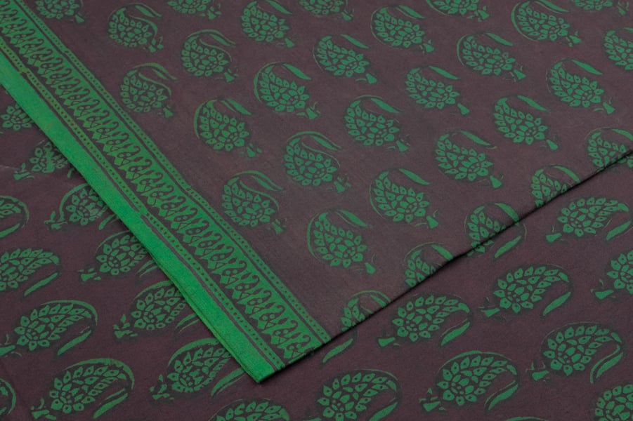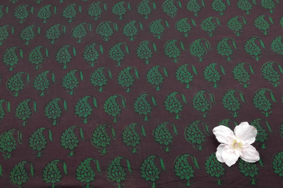 Espresso Brown Handblock Bagh Printed Cotton Fabric