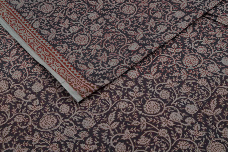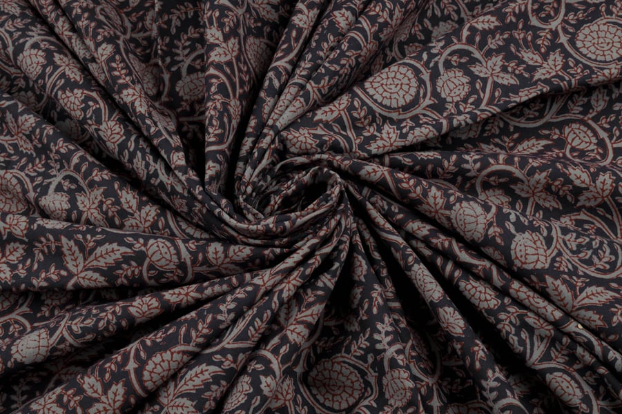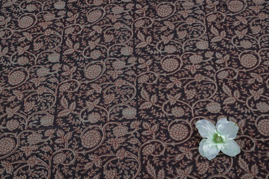 Black Handblock Bagh HandBlock Printed Cotton Fabric