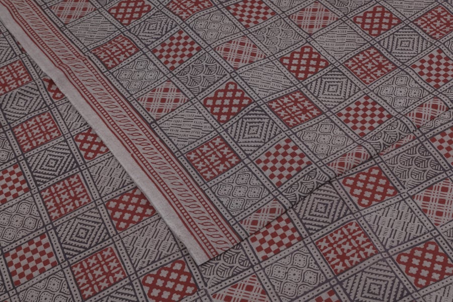Gray Handblock Bagh Printed Cotton Fabric