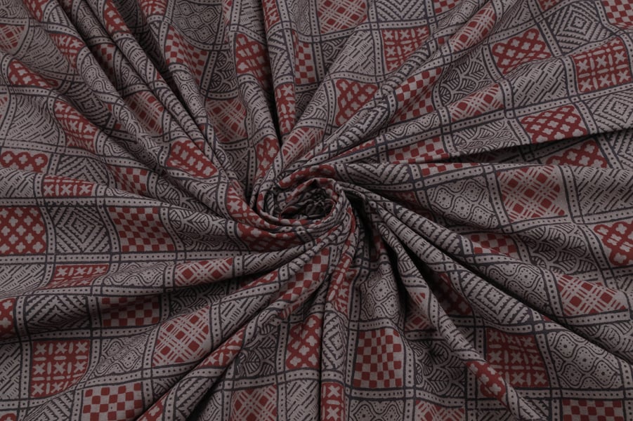 Natural Red Bagru Handblock Printed Cotton Fabric