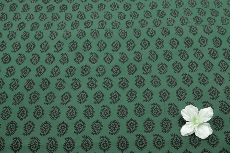 Hunter Green Handblock Bagh HandBlock Printed Cotton Fabric