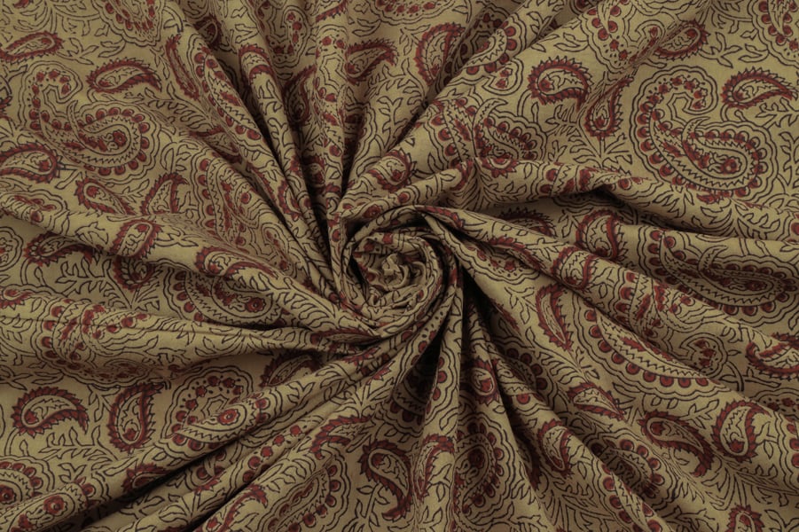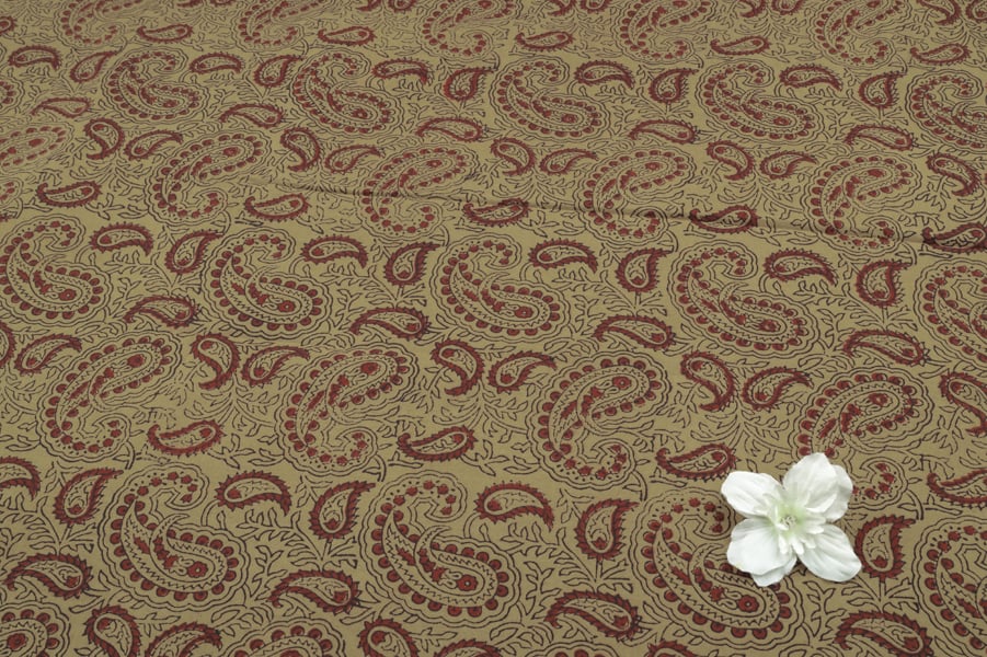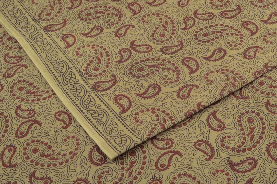 This Fabric is handloom woven and / or hand printed using vegetable dyes. There might be slight irregularities in the motif & colour shade which is a result of human involvement & is a hallmark of fabrics made by hand. Since the fabric is dyed using natural, vegetable dyes, it may rub dry or bleed colour on coming in contact with water for the first time.