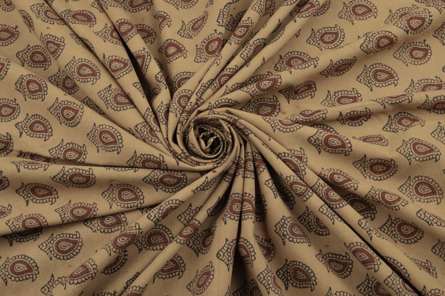Khaki Brown Handblock Bagh Printed Cotton Fabric