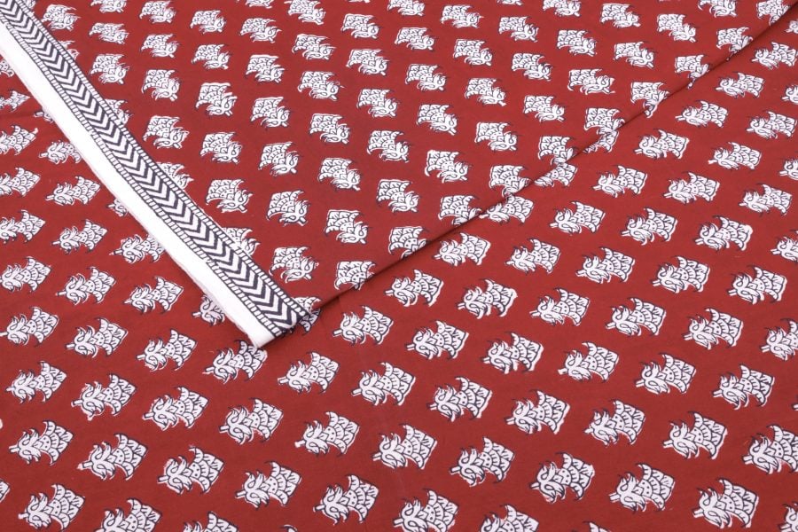 Madder Red Handblock Bagh HandBlock Printed Cotton Fabric
