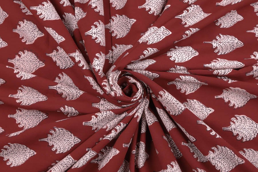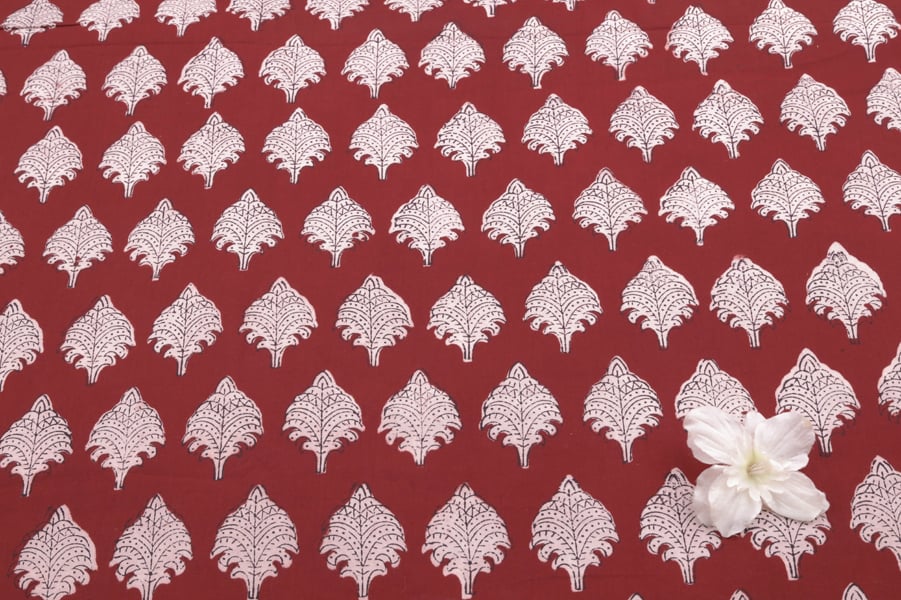 Madder Red Handblock Bagh Printed Cotton Fabric