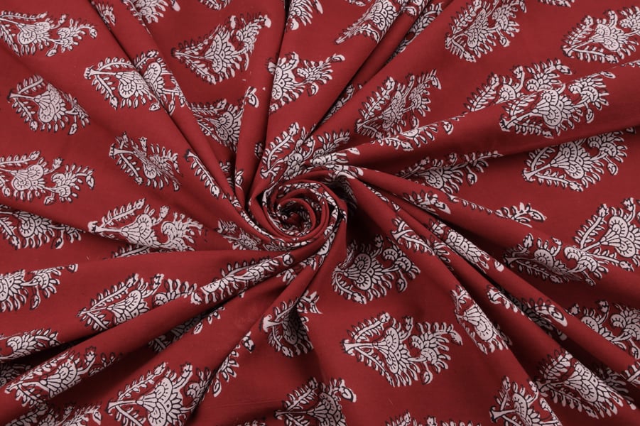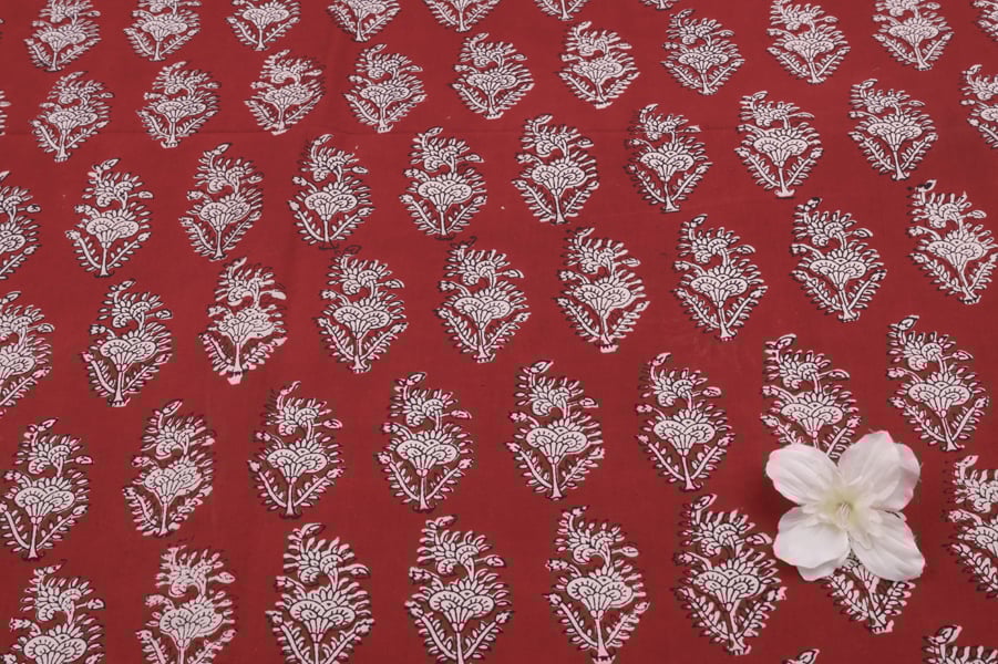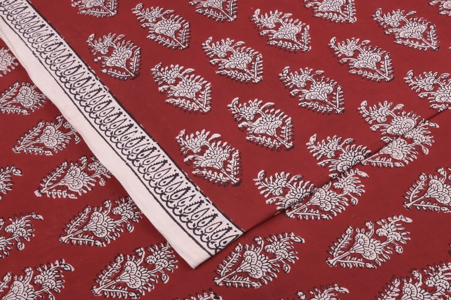 Madder Red Handblock Bagh Printed Cotton Fabric