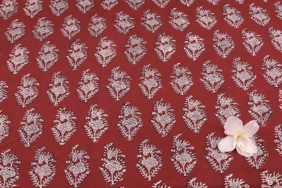Madder Red Handblock Bagh Printed Cotton Fabric