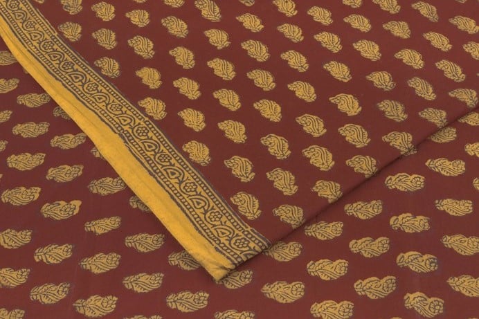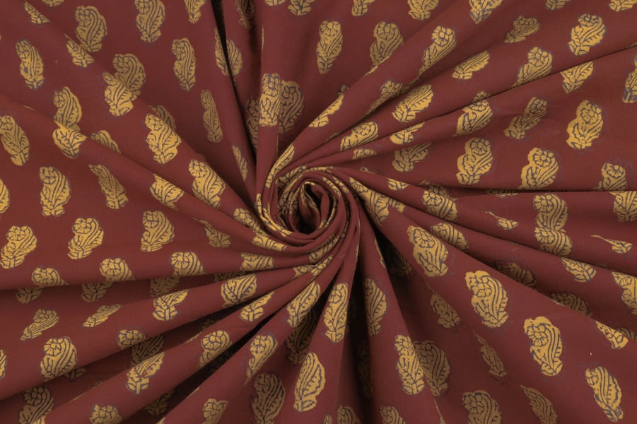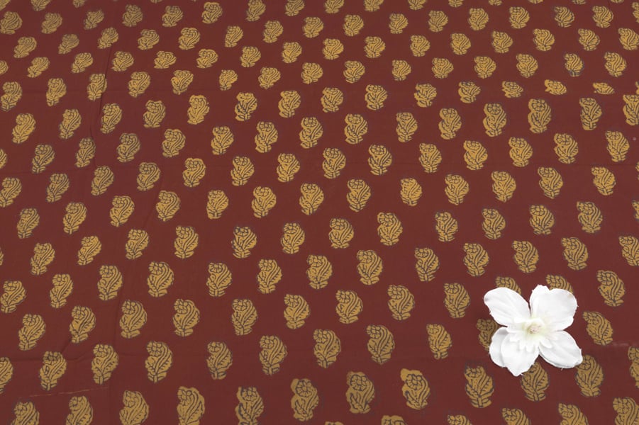 Rich Mahogany Brown Handblock Bagh Printed Cotton Fabric