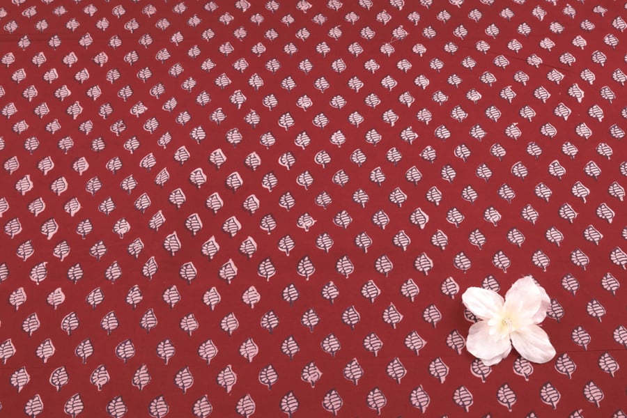 Madder Red Handblock Bagh Printed Cotton Fabric