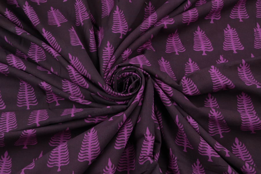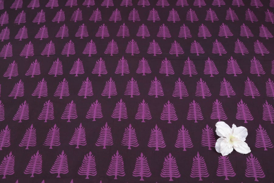 Rich Mahogany Brown Handblock Bagh Printed Cotton Fabric