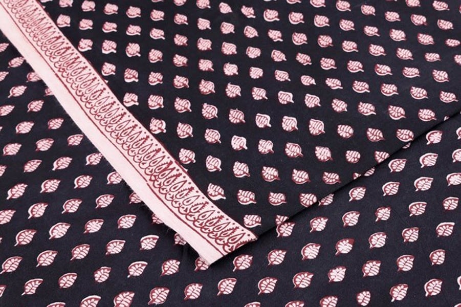 Natural Black Handblock Bagh Printed Cotton Fabric