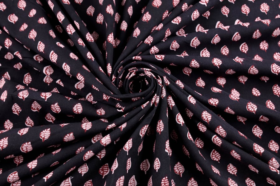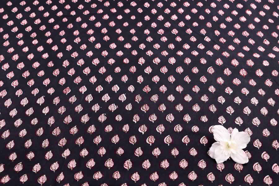 Black Handblock Bagh Printed Soft Cotton Fabric