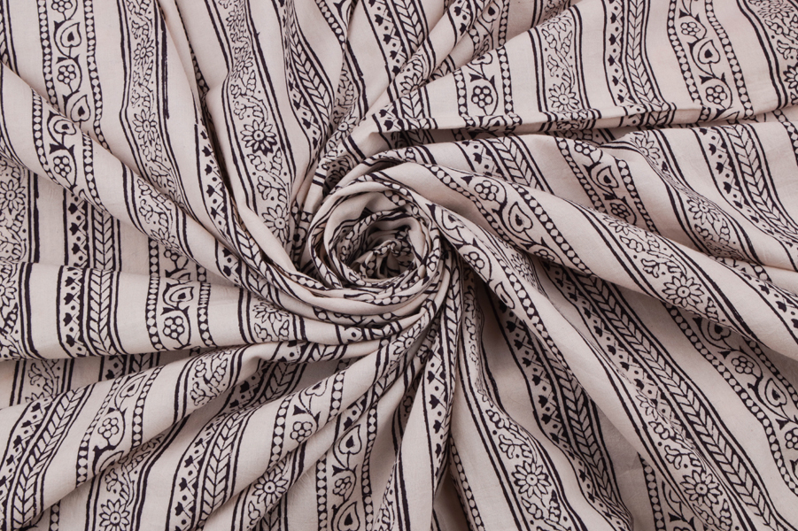 Natural White Handblock Bagh Printed Soft Cotton Fabric