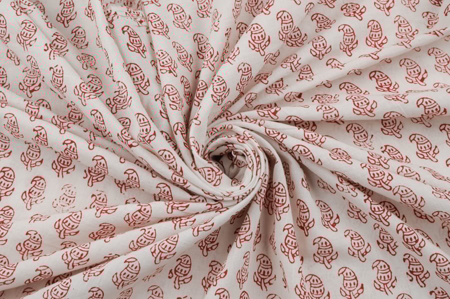 This Fabric is handloom woven and / or hand printed using vegetable dyes. There might be slight irregularities in the motif & colour shade which is a result of human involvement & is a hallmark of fabrics made by hand. Since the fabric is dyed using natural, vegetable dyes, it may rub dry or bleed colour on coming in contact with water for the first time.