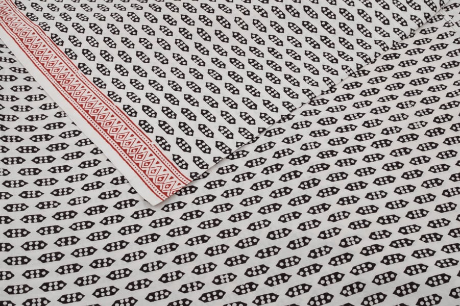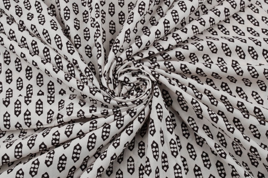 Natural White Handblock Bagh Printed Soft Cotton Fabric