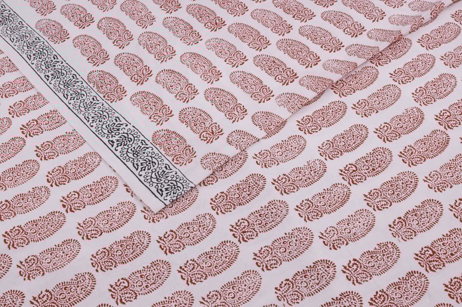 This Fabric is handloom woven and / or hand printed using vegetable dyes. There might be slight irregularities in the motif & colour shade which is a result of human involvement & is a hallmark of fabrics made by hand. Since the fabric is dyed using natural, vegetable dyes, it may rub dry or bleed colour on coming in contact with water for the first time.