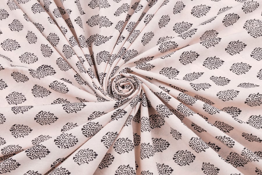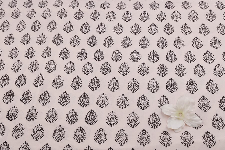Natural White Handblock Bagh Printed Soft Cotton Fabric