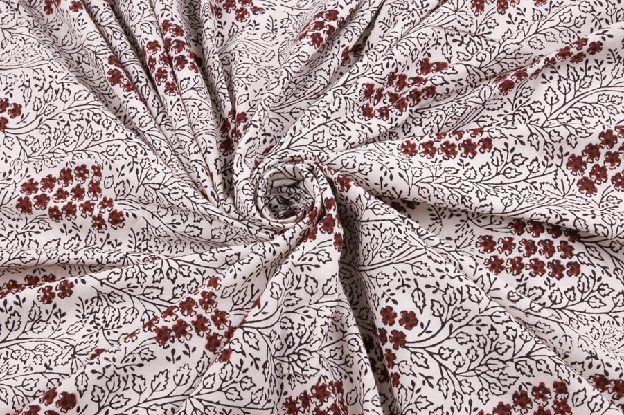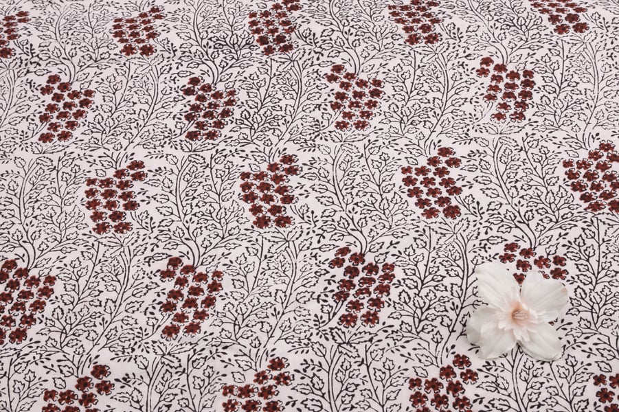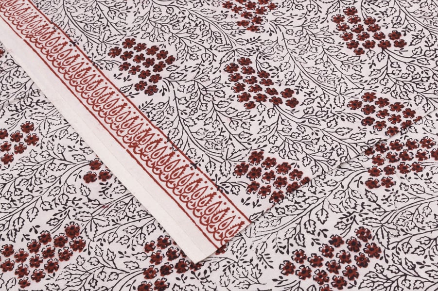 Natural White Handblock Bagh Printed Soft Cotton Fabric