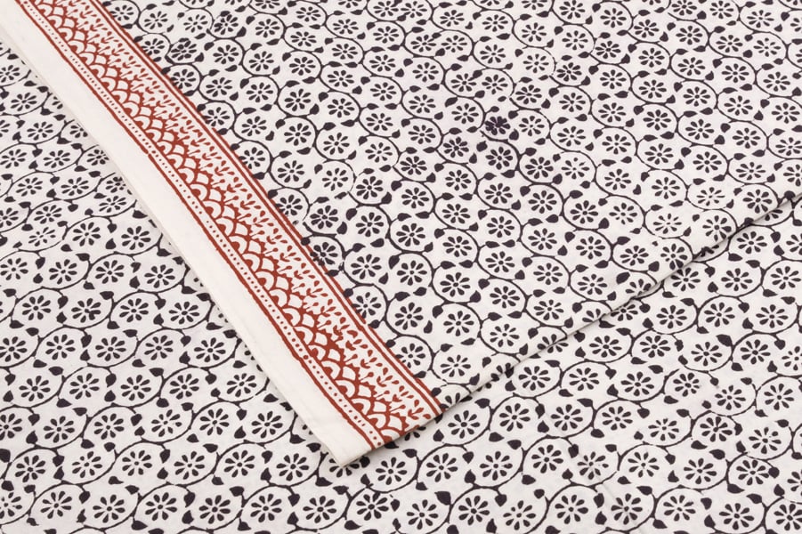 This Fabric is handloom woven and / or hand printed using vegetable dyes. There might be slight irregularities in the motif & colour shade which is a result of human involvement & is a hallmark of fabrics made by hand. Since the fabric is dyed using natural, vegetable dyes, it may rub dry or bleed colour on coming in contact with water for the first time.