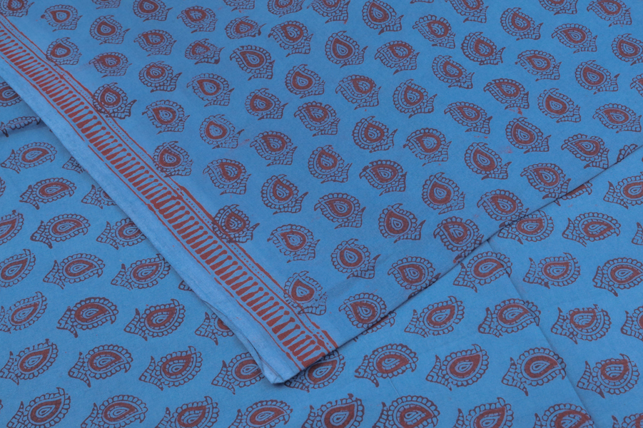 This Fabric is handloom woven and / or hand printed using vegetable dyes. There might be slight irregularities in the motif & colour shade which is a result of human involvement & is a hallmark of fabrics made by hand. Since the fabric is dyed using natural, vegetable dyes, it may rub dry or bleed colour on coming in contact with water for the first time.