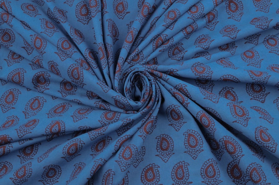 Ocean Deep Blue Handblock Bagh Printed Cotton Fabric