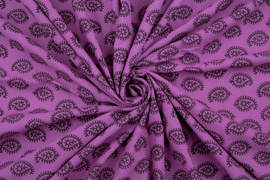 Plum Purple Handblock Bagh HandBlock Printed Cotton Fabric