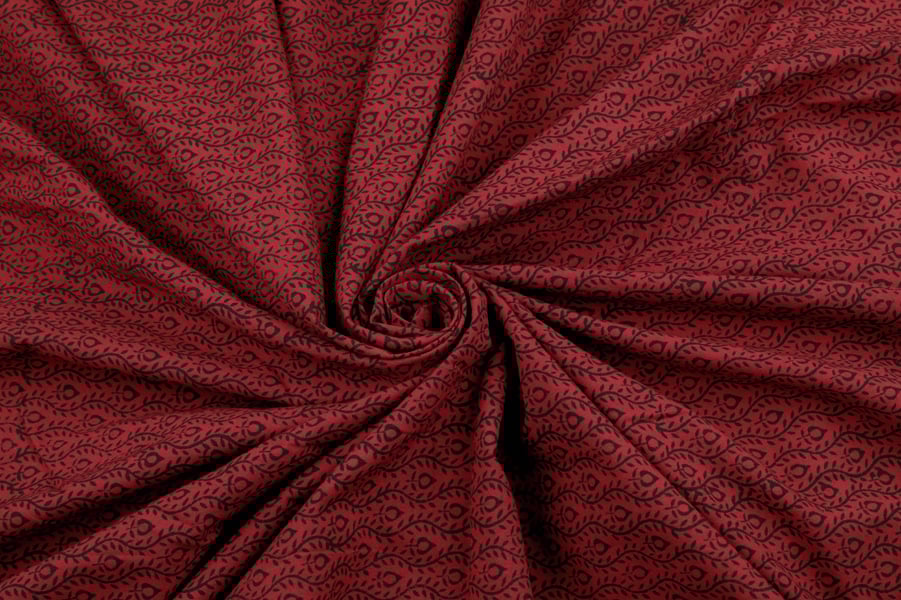 Ruby Red Handblock Bagh Printed Cotton Fabric