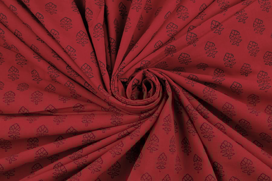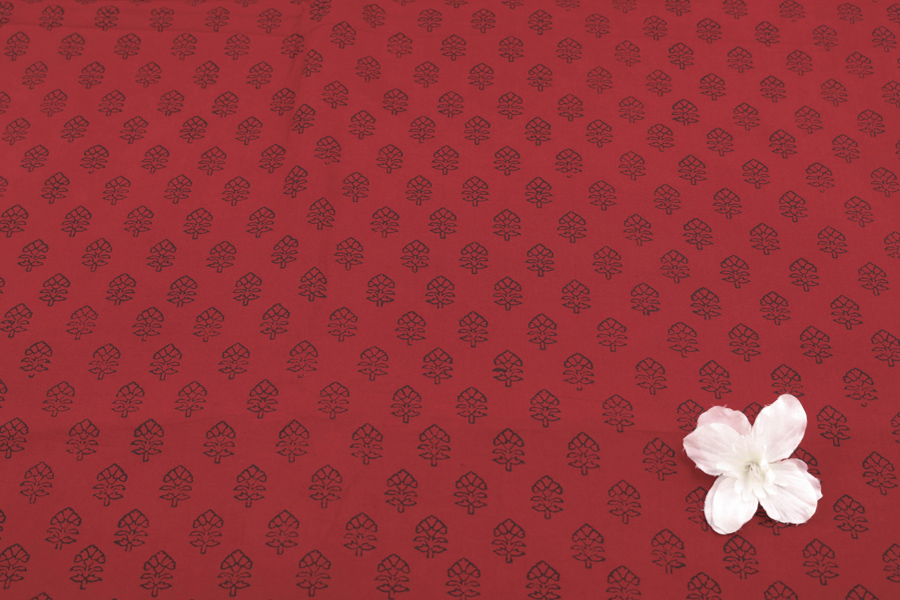 Ruby Red Handblock Bagh Printed Cotton Fabric