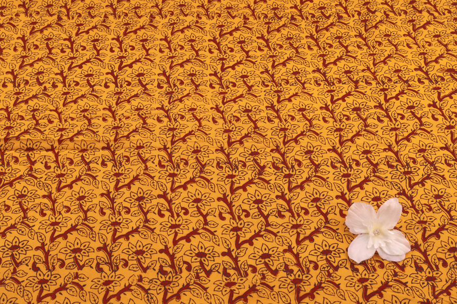 This Fabric is handloom woven and / or hand printed using vegetable dyes. There might be slight irregularities in the motif & colour shade which is a result of human involvement & is a hallmark of fabrics made by hand. Since the fabric is dyed using natural, vegetable dyes, it may rub dry or bleed colour on coming in contact with water for the first time.