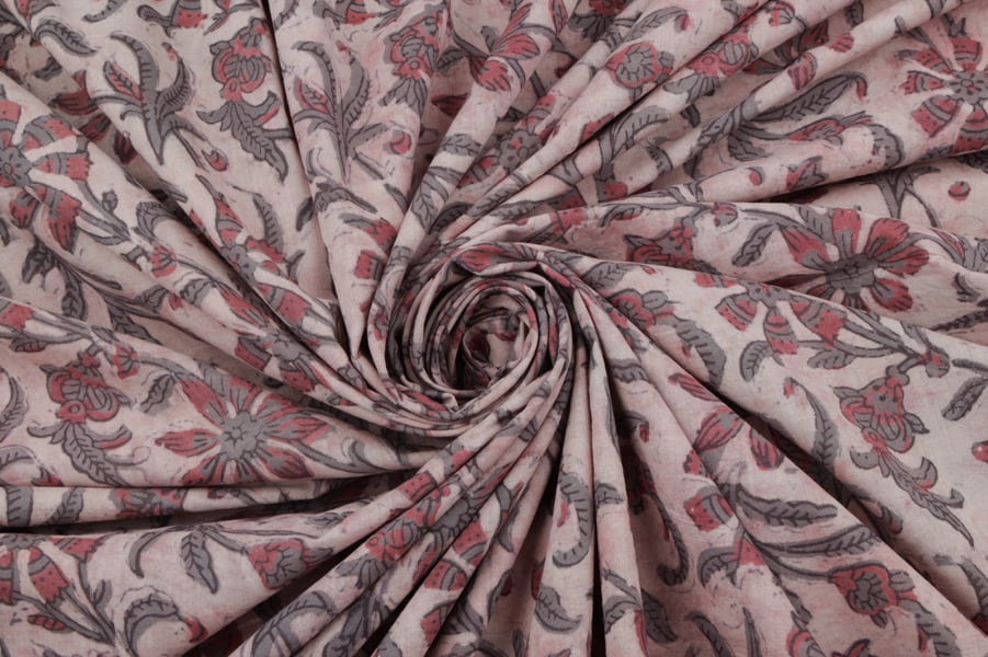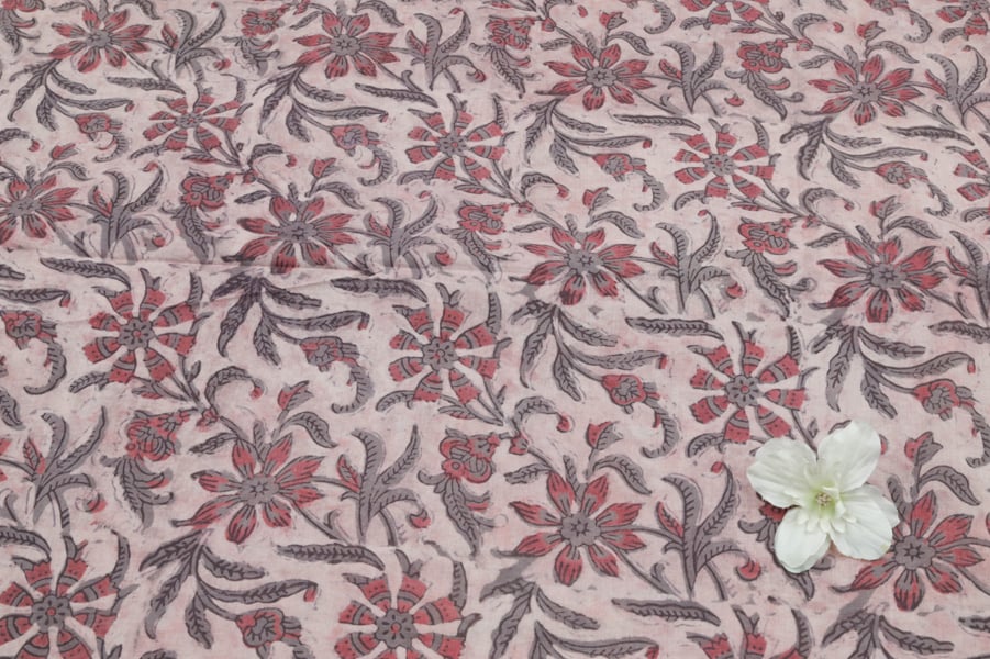 Natural Madder Red Bagru Handblock Printed Cotton Fabric