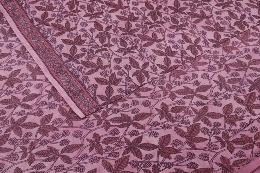 Fuchsia Plum Pink Bagru Handblock Printed Cotton Fabric