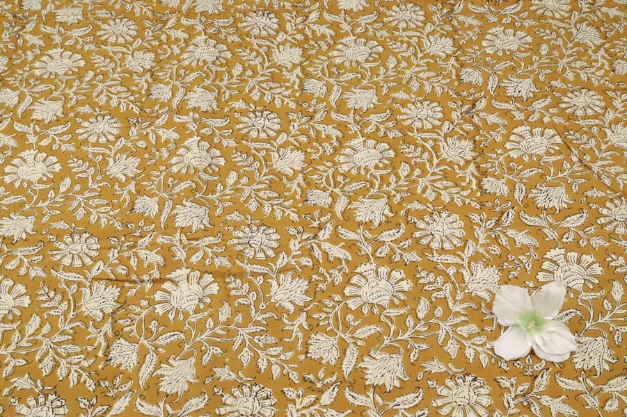 Mustard Yellow – Bagru Handblock Printed Cotton Fabric
