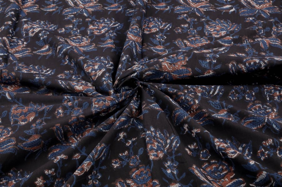 Natural Black Bagru Handblock Printed Cotton Fabric