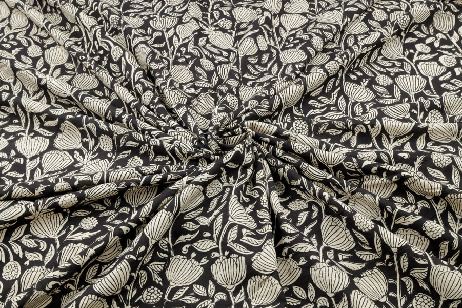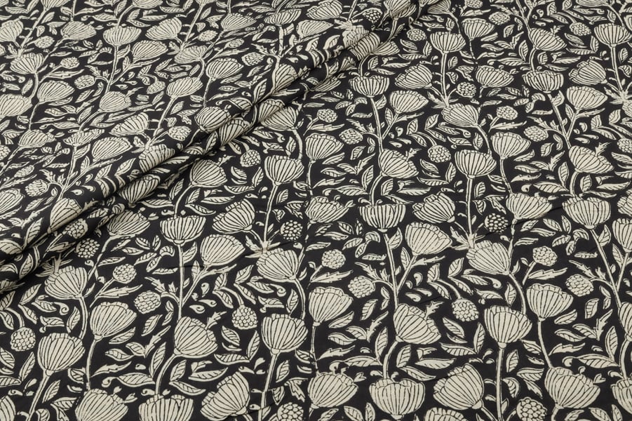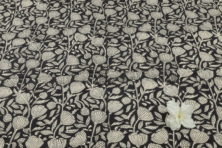 Natural Black Bagru Handblock Printed Cotton Fabric