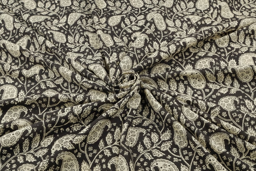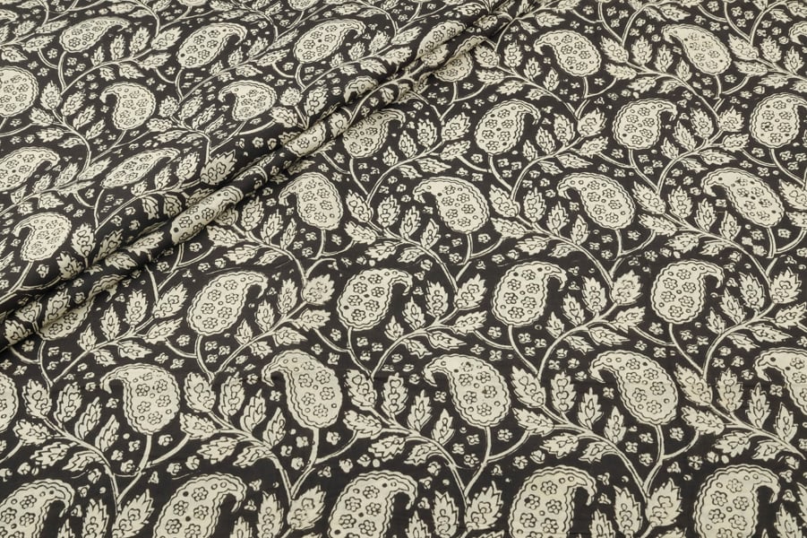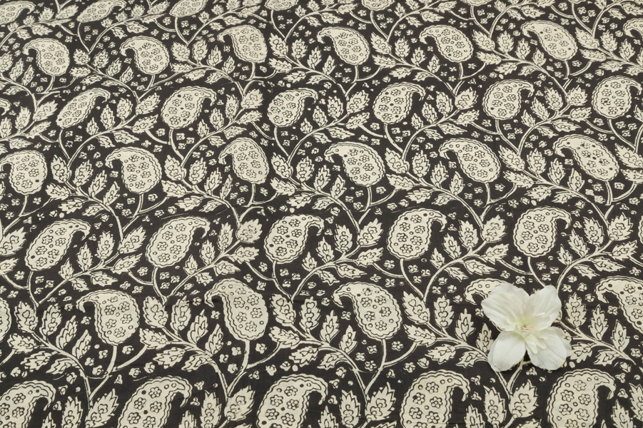 Natural Black Bagru Handblock Printed Cotton Fabric