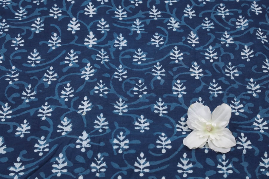 Natural Indigo Blue Bagru Handblock Printed Cotton Fabric