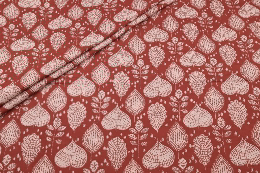 Natural Madder Red Bagru Handblock Printed Cotton Fabric