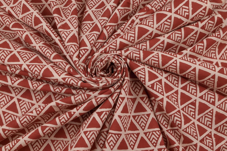 Natural Madder Red Bagru Handblock Printed Cotton Fabric
