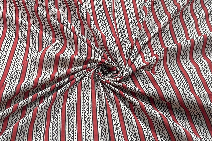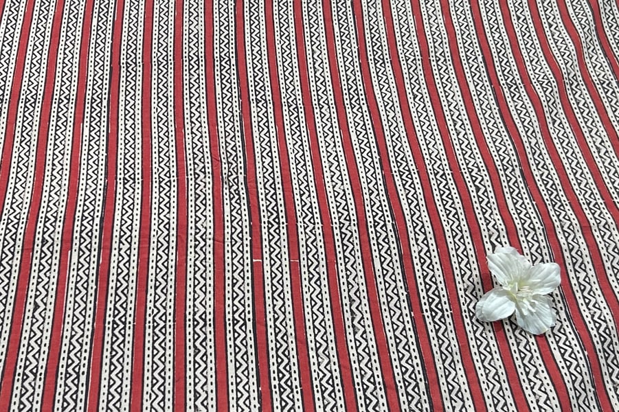 Natural Madder Red Bagru Handblock Printed Cotton Fabric
