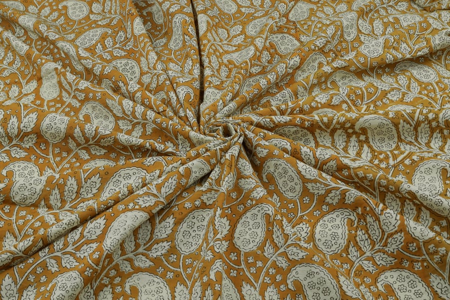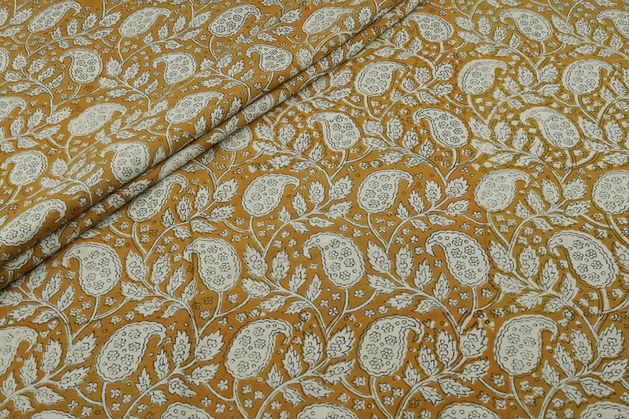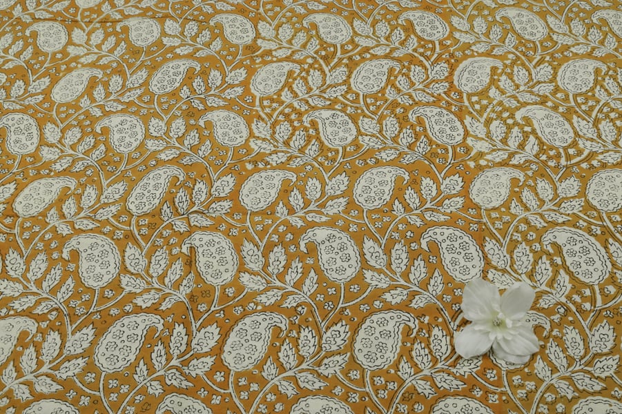 Natural Musturd Bagru Handblock Printed Cotton Fabric