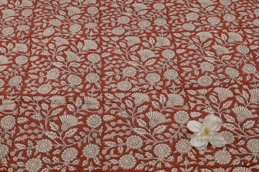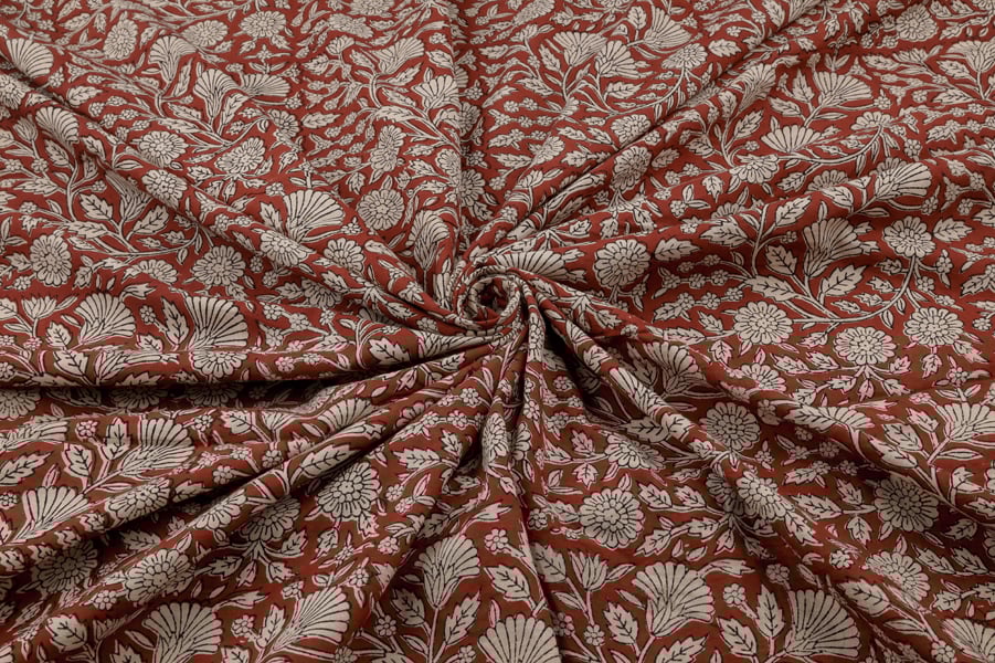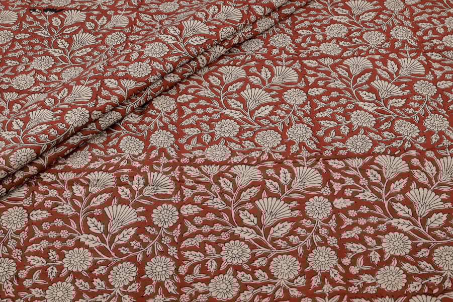 Natural Red Bagru Handblock Printed Cotton Fabric