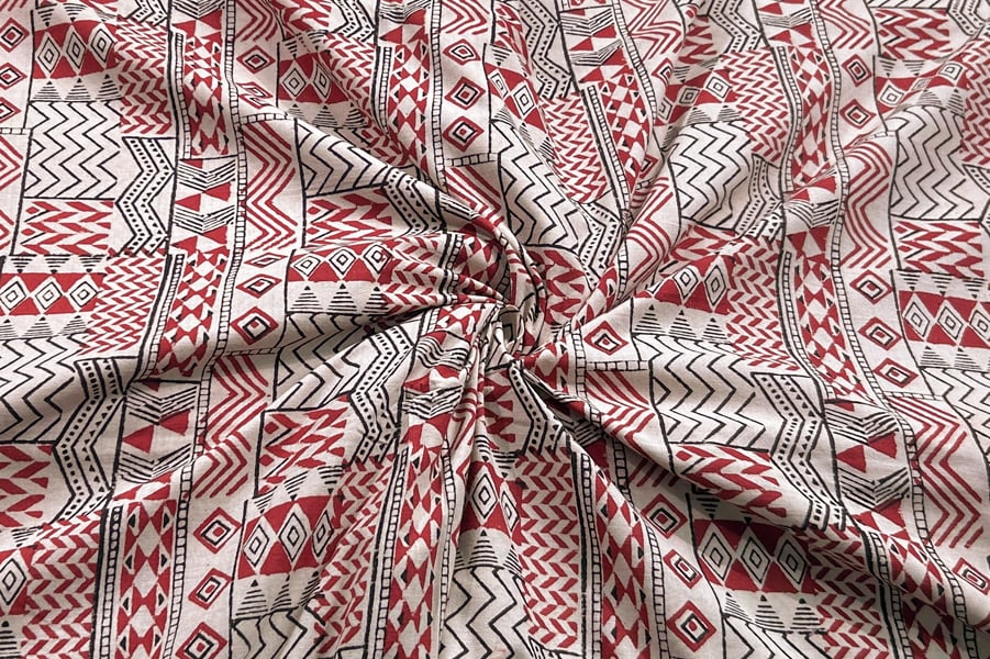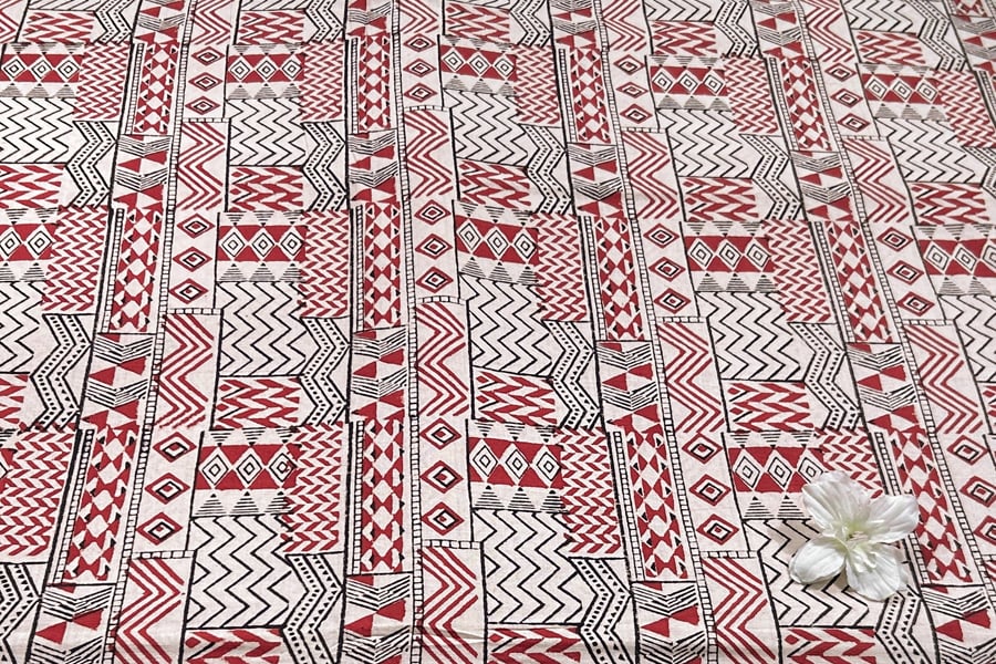 Natural Madder Red Bagru Handblock Printed Cotton Fabric