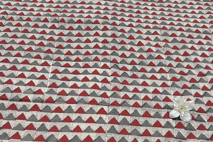 This Fabric is handloom woven and / or hand printed using vegetable dyes. There might be slight irregularities in the motif & colour shade which is a result of human involvement & is a hallmark of fabrics made by hand. Since the fabric is dyed using natural, vegetable dyes, it may rub dry or bleed colour on coming in contact with water for the first time.