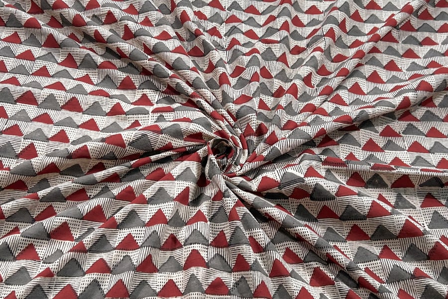 Natural Madder Red Bagru Handblock Printed Cotton Fabric