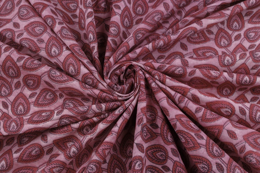 Pastel Pink Bagru Handblock Printed Cotton Fabric