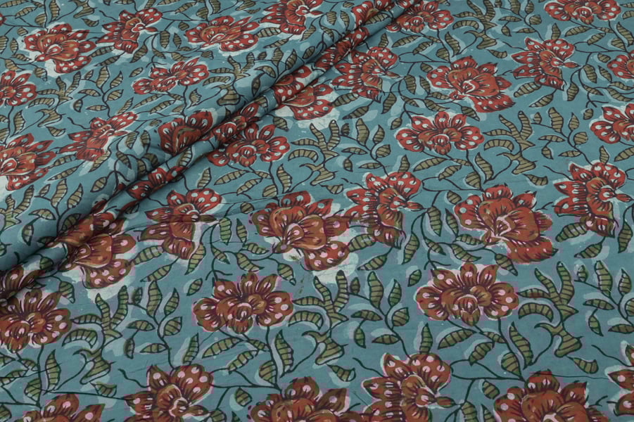 Peacock Blue Bagru Handblock Printed Cotton Fabric