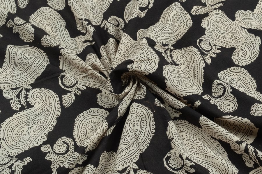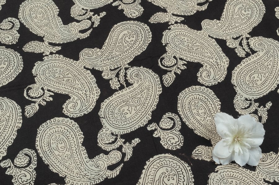 Natural Black Bagru Handblock Printed Cotton Fabric