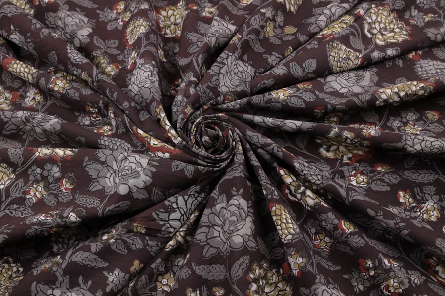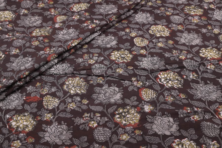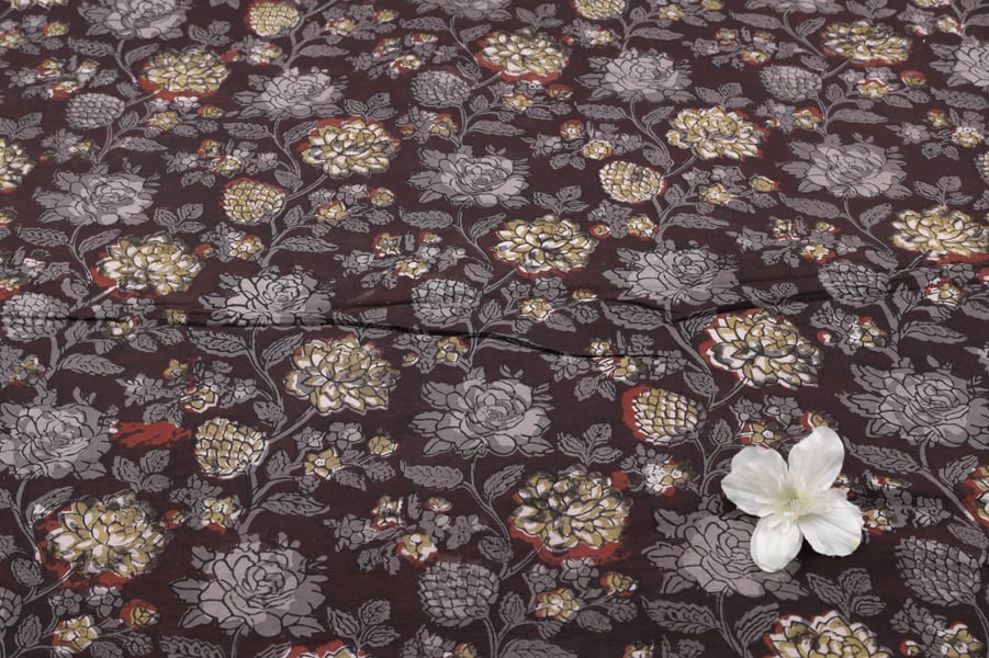 Rich Mahagony Brown Bagru Handblock Printed Cotton Fabric