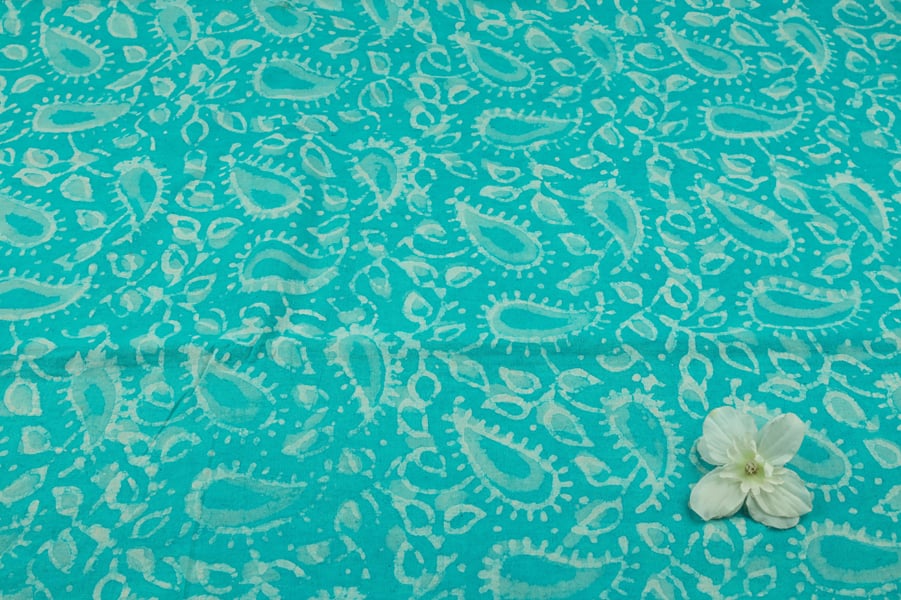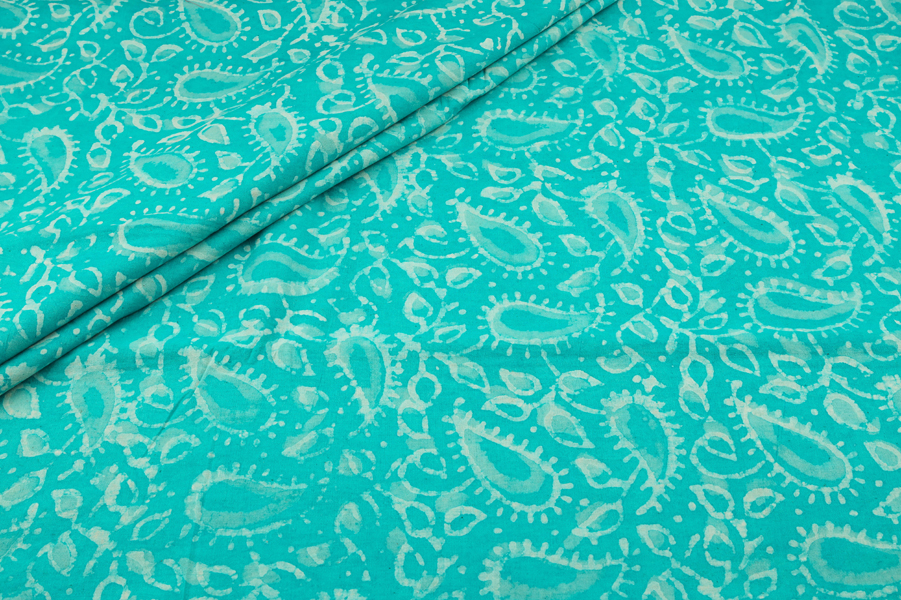 Turquoise Blue Bagru Handblock Printed Cotton Fabric
