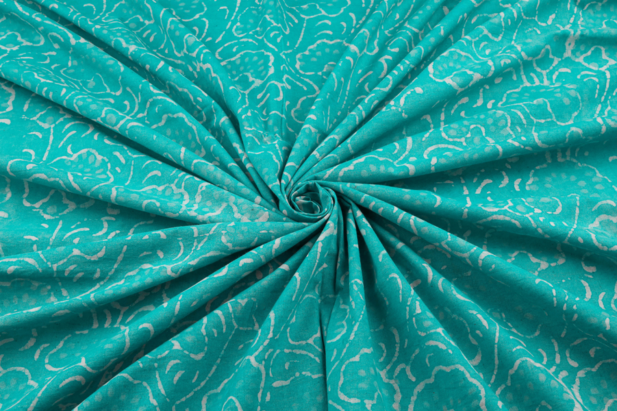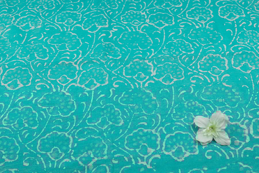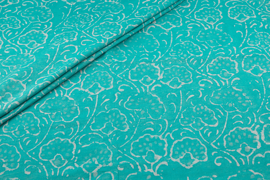 Turquoise Blue Bagru Handblock Printed Cotton Fabric